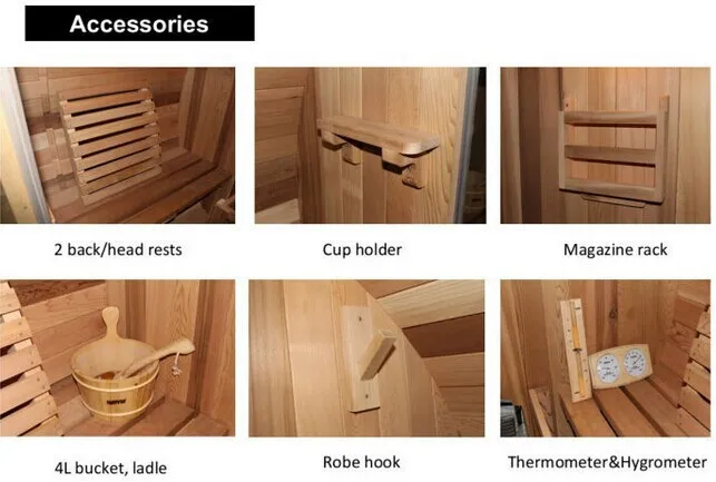 - సౌకర్యవంతమైన ఉపకరణాలు: కప్ హోల్డర్, మ్యాగజైన్ రాక్, అంతర్నిర్మిత బట్టల హ్యాంగర్ (బట్టలు మరియు తువ్వాళ్లను సాధారణంగా నిల్వ చేయడానికి, ఆవిరి సెషన్ల సమయంలో అయోమయాన్ని తొలగిస్తుంది);