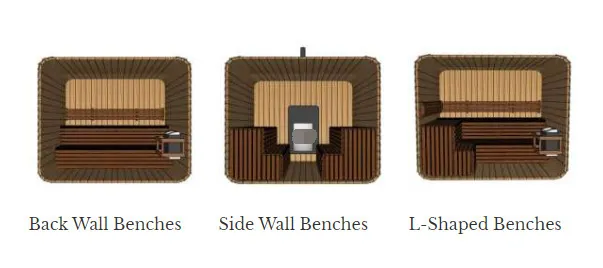 సమూహ వినియోగం కోసం ప్రత్యేకంగా ఓపెన్ ఇంటీరియర్తో రూపొందించబడింది, మూడు సీట్ల లేఅవుట్ ఎంపికలకు మద్దతు ఇస్తుంది: వెనుక గోడకు మౌంటెడ్, సైడ్-వాల్ మౌంటెడ్ మరియు ఎల్-ఆకారంలో. ఇది విభిన్న సమూహ పరిమాణాలు మరియు వినియోగ అలవాట్లకు అనుగుణంగా ఉంటుంది (సులభంగా కుటుంబ సమావేశాలు లేదా స్నేహితుల కలయికకు అనుగుణంగా ఉంటుంది). సీట్లు లేయర్డ్ బోలు నిర్మాణాన్ని అవలంబిస్తాయి, అంతర్గత గాలి ప్రసరణను సులభతరం చేస్తూ కూర్చోవడం మరియు పడుకోవడం కోసం సౌకర్యాన్ని నిర్ధారిస్తుంది, ఆవిరి అనుభూతిని అధిక-ఉష్ణోగ్రత వాతావరణంలో మరింత శ్వాసక్రియకు మరియు తక్కువ నిబ్బరంగా ఉండేలా చేస్తుంది.