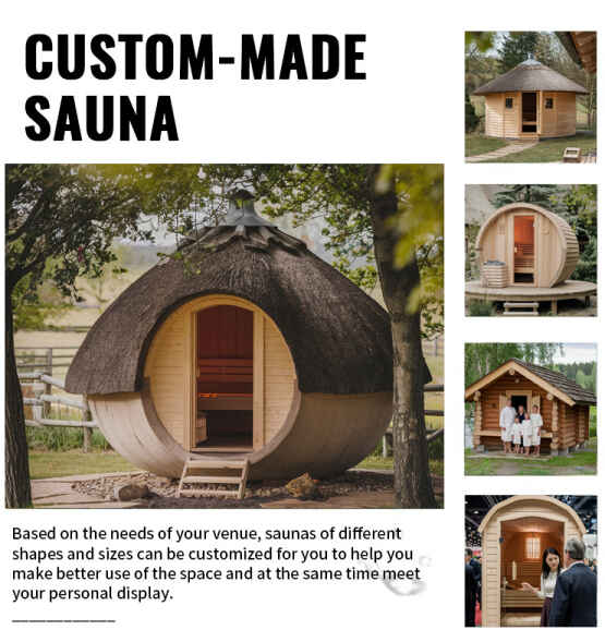 కమర్షియల్ అవుట్డోర్ దృశ్యం: దిఅవుట్డోర్ గ్లాస్ డోర్ అవుట్డోర్ స్టీమింగ్ రూమ్క్యాంప్సైట్లు, హాట్ స్ప్రింగ్ రిసార్ట్లు, అవుట్డోర్ హోమ్స్టేలు మరియు ఇతర ప్రదేశాలకు అనుకూలంగా ఉంటుంది. లక్షణమైన విశ్రాంతి ప్రాజెక్ట్గా, ఇది కస్టమర్ అనుభవాన్ని మరియు వేదిక పోటీతత్వాన్ని మెరుగుపరుస్తుంది.
