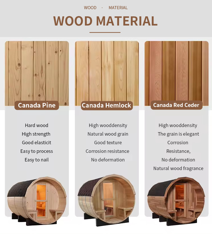 పరిణతి చెందిన హస్తకళ: దిఅవుట్డోర్ గ్లాస్ డోర్ అవుట్డోర్ స్టీమింగ్ రూమ్బాహ్య-నిర్దిష్ట ప్రక్రియలతో కలిపి ప్రొఫెషనల్ చెక్క పని పరికరాలను (సాండింగ్ మెషిన్ వంటివి) స్వీకరిస్తుంది. వుడ్ యాంటీ తుప్పు మరియు తేమ-ప్రూఫ్తో, గట్టి స్ప్లిసింగ్ మరియు సీల్డ్ వాటర్ప్రూఫ్ ట్రీట్మెంట్తో, బర్ర్స్ లేకుండా మృదువైన ఉపరితలంతో, బహిరంగ వర్షం, మంచు మరియు తేమతో కూడిన వాతావరణాలకు అనుగుణంగా ఉంటుంది.